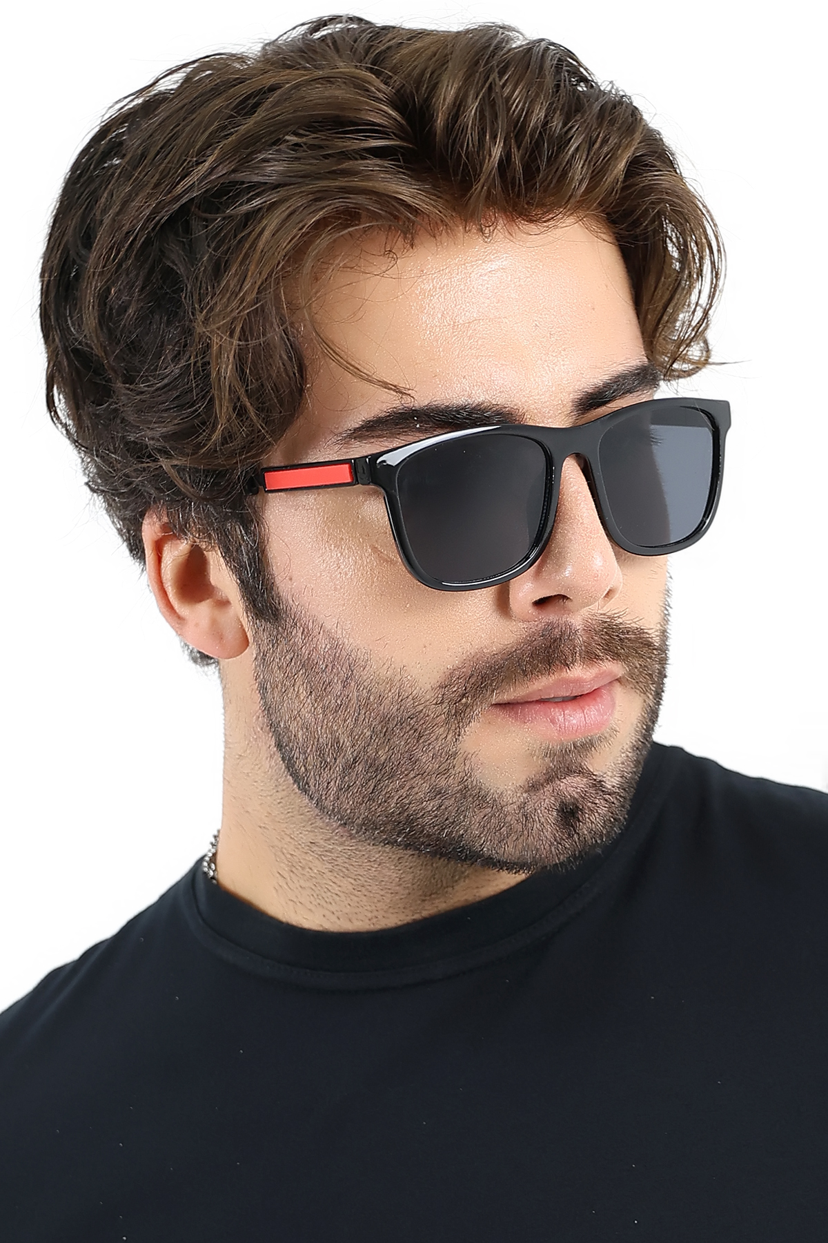 Erkek Siyah Kare UV400 Güneş Gözlüğü Kırmızı Detay WP25-15 C2