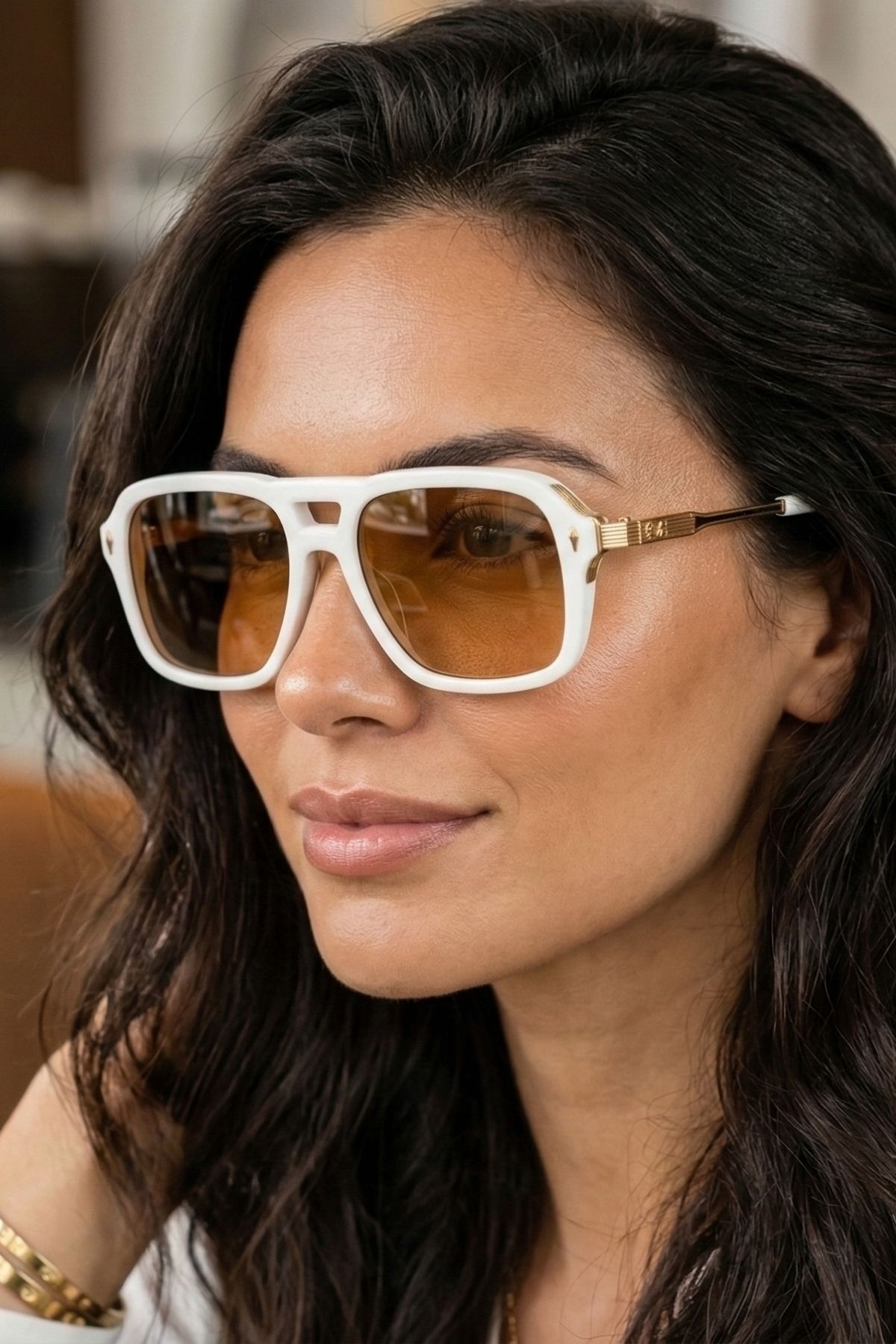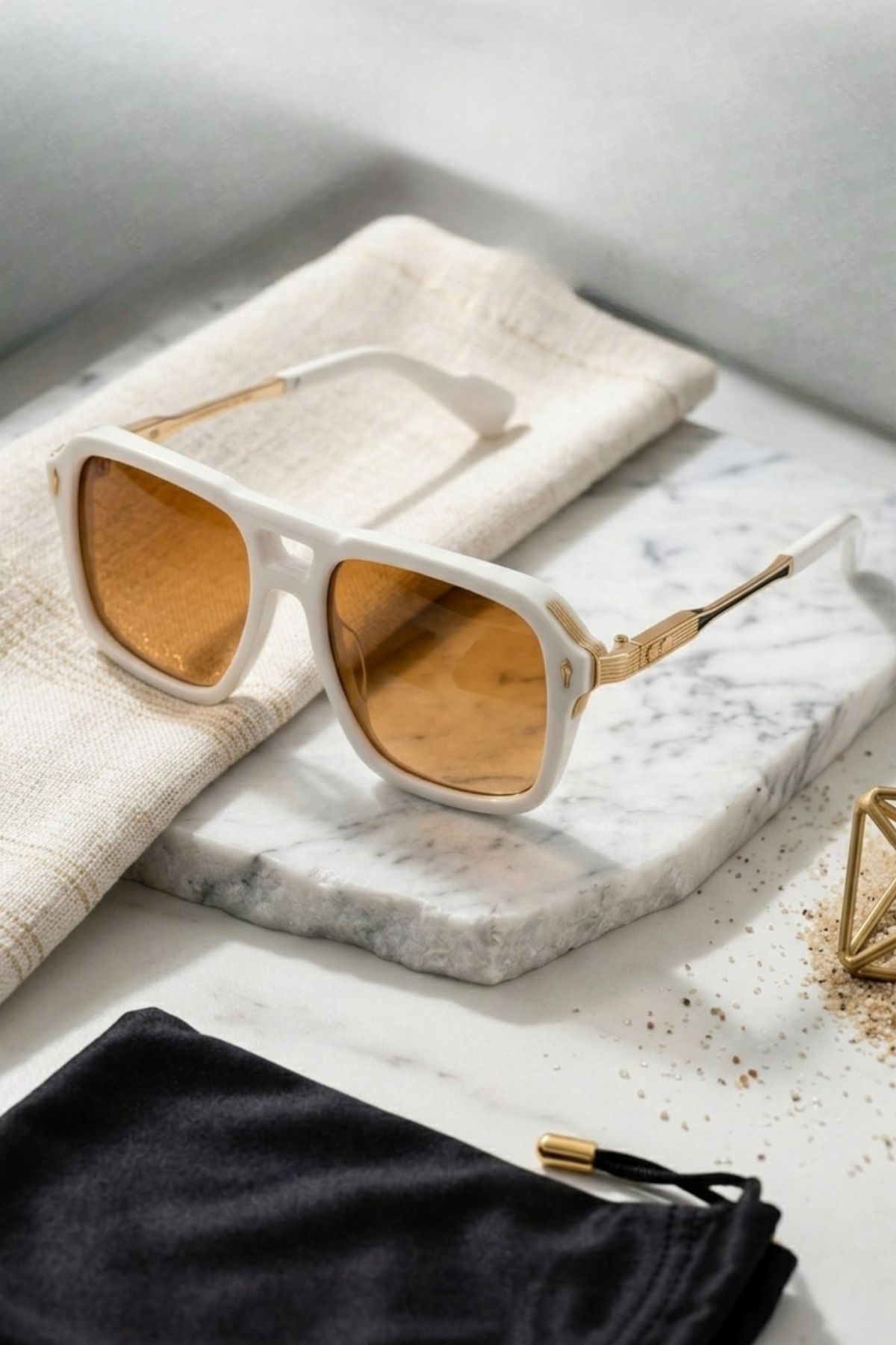 - Bal rengi camları, hem stil sahibi hem de fonksiyonel bir aksesuar olarak öne çıkar.