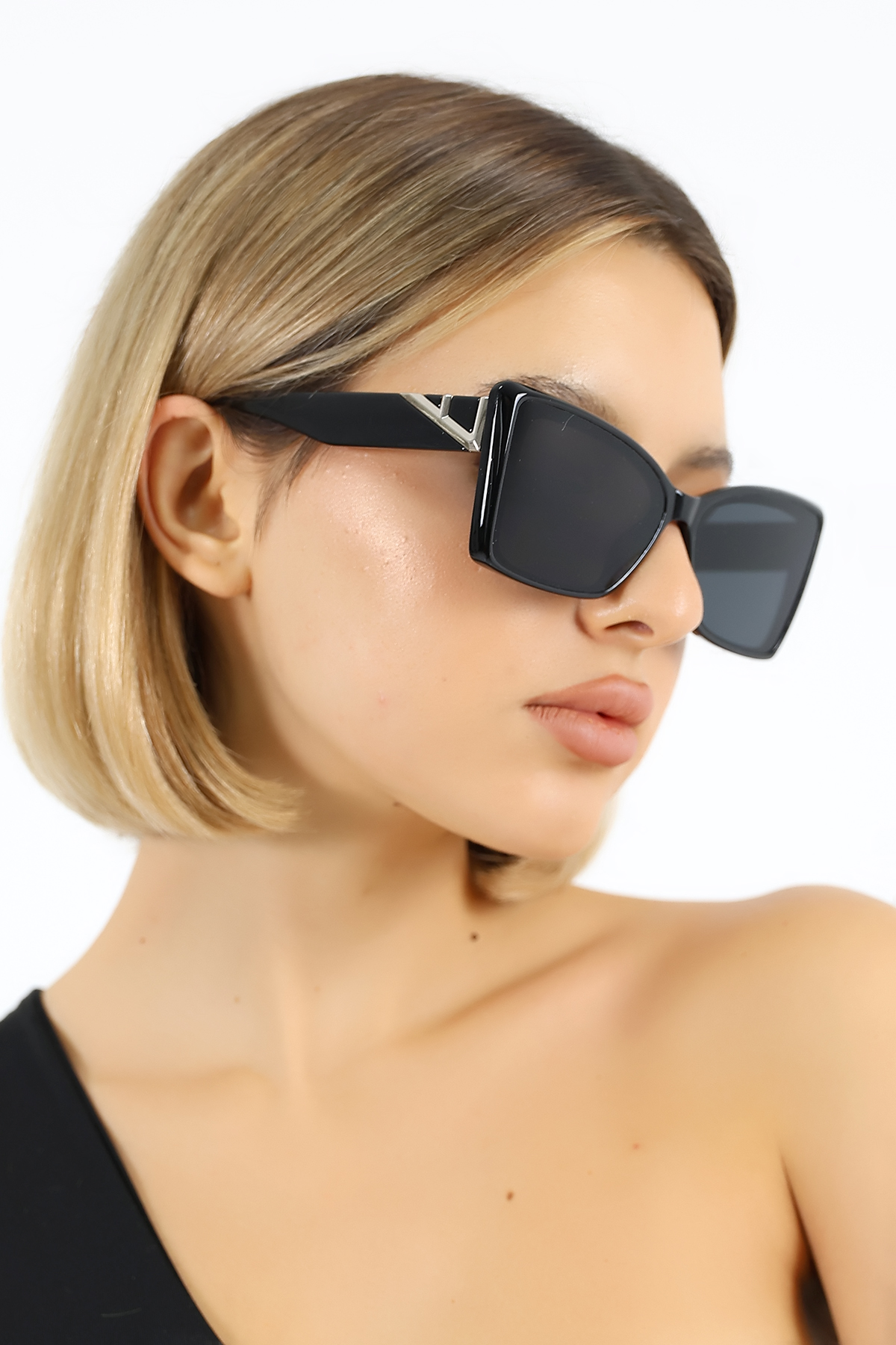 Kadın Kelebek Siyah UV400 Güneş Gözlüğü Gümüş Detay 25-17 C2