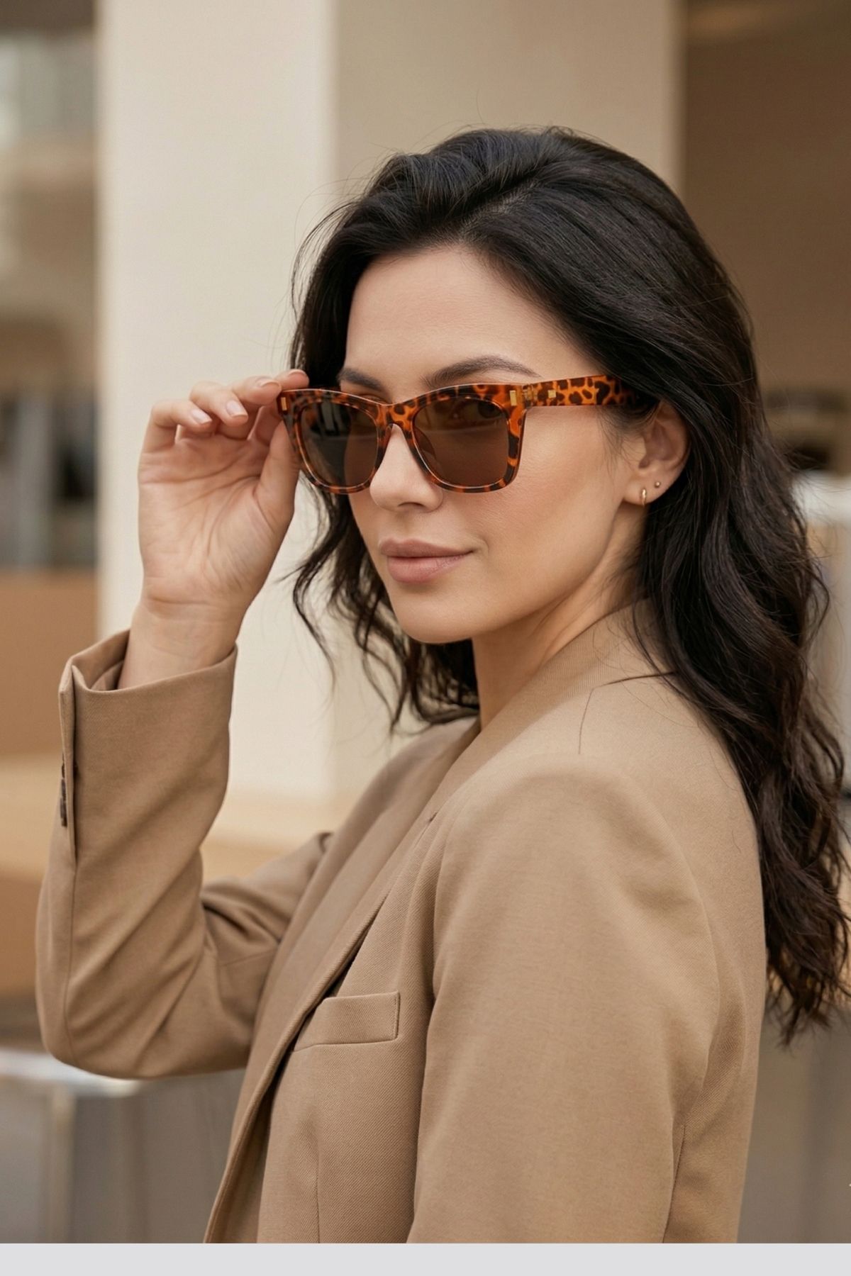 - Kare formu ile modern ve şık bir tasarıma sahip, her yüz tipine uyum sağlayan kadın güneş gözlüğü.
