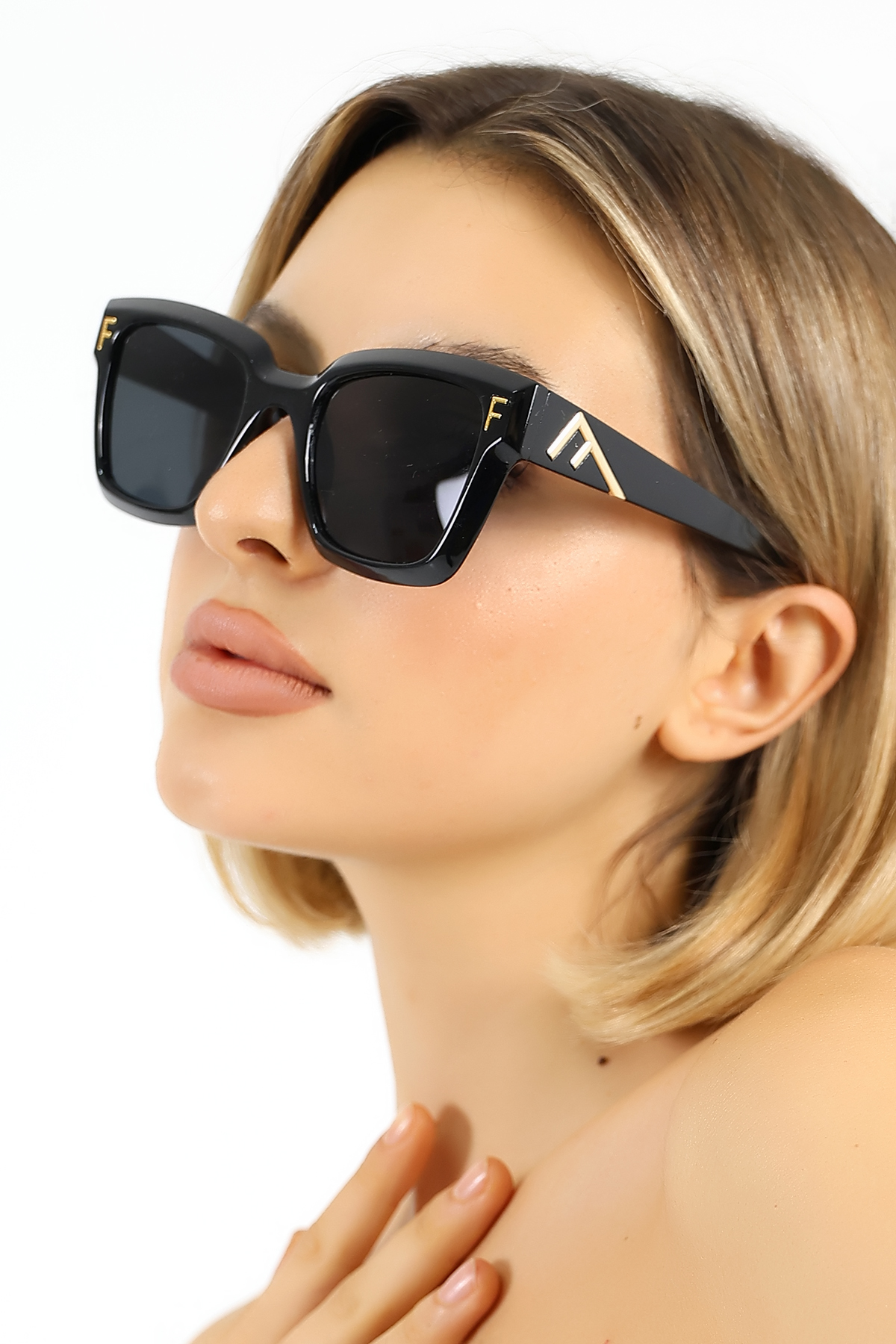 Kadın Siyah Oversize UV400 Güneş Gözlüğü Gold Detay WP25-08 C2