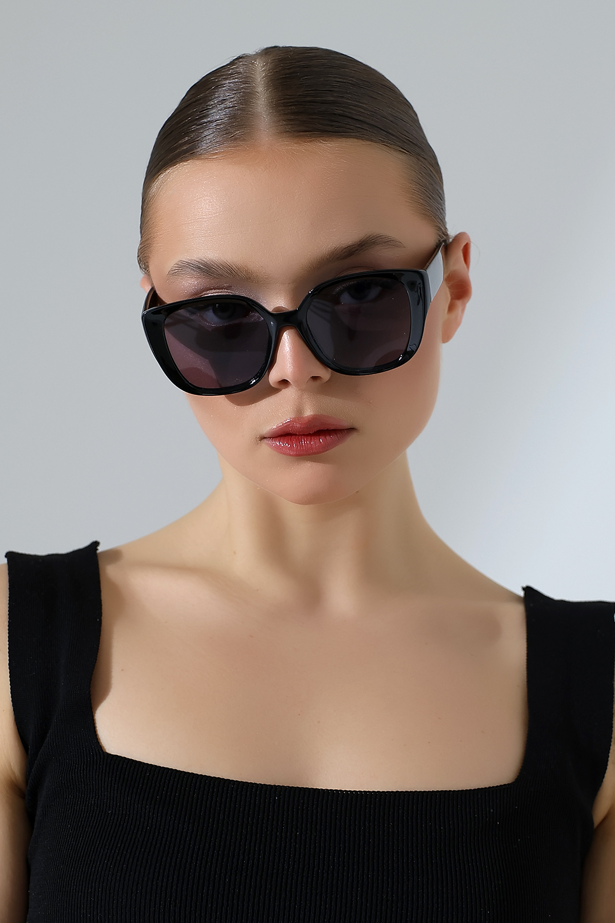 - Kare formu ile modern ve şık bir tasarıma sahip, her yüz tipine uyum sağlayan kadın güneş gözlüğü.