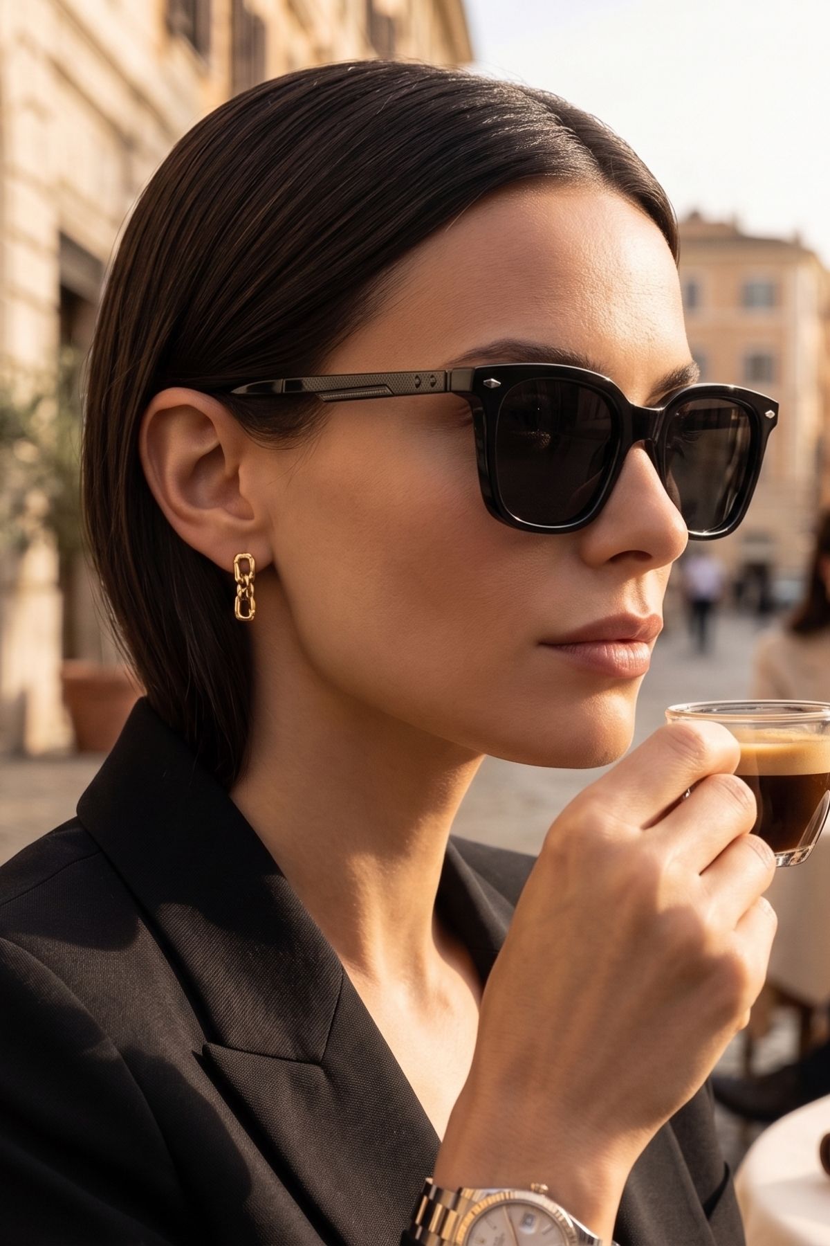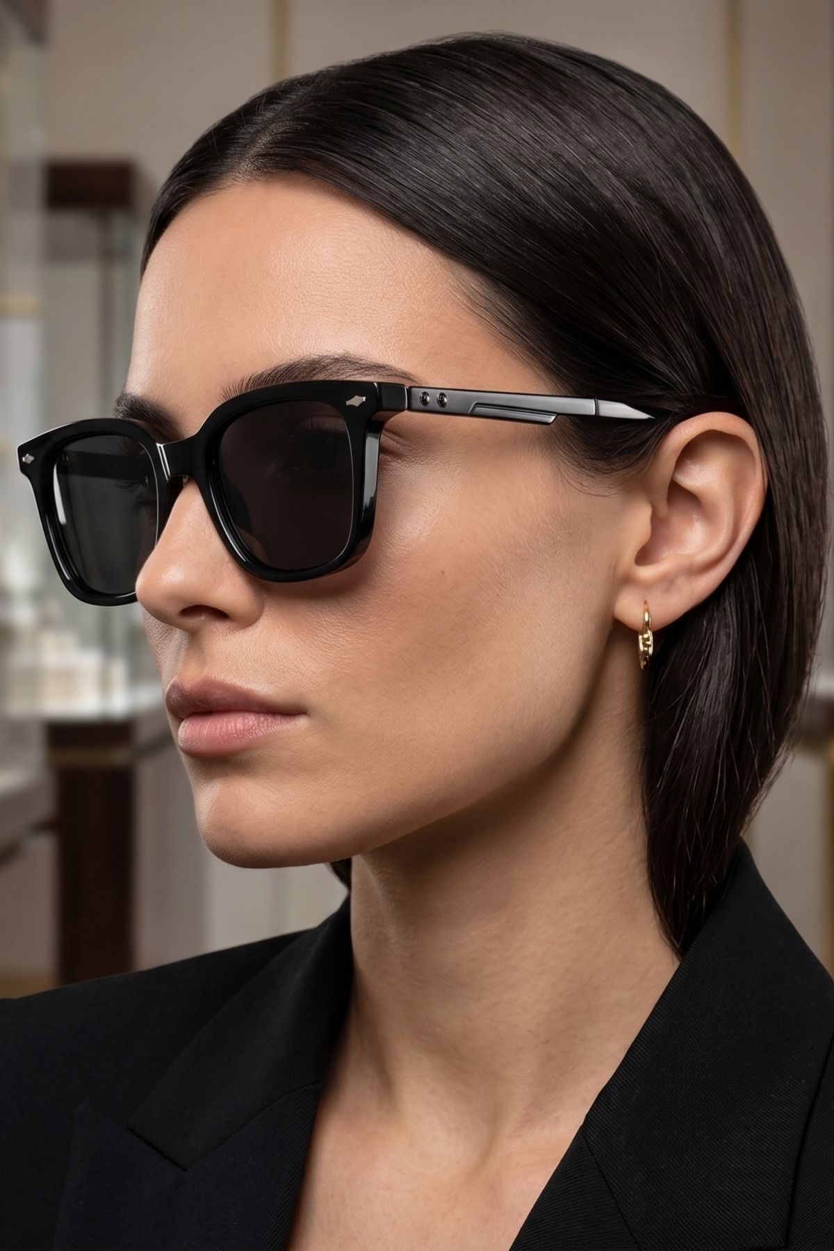 Kadın UV400 Siyah Metal Sap Güneş Gözlüğü Aksesuarlı WP25-38 C2