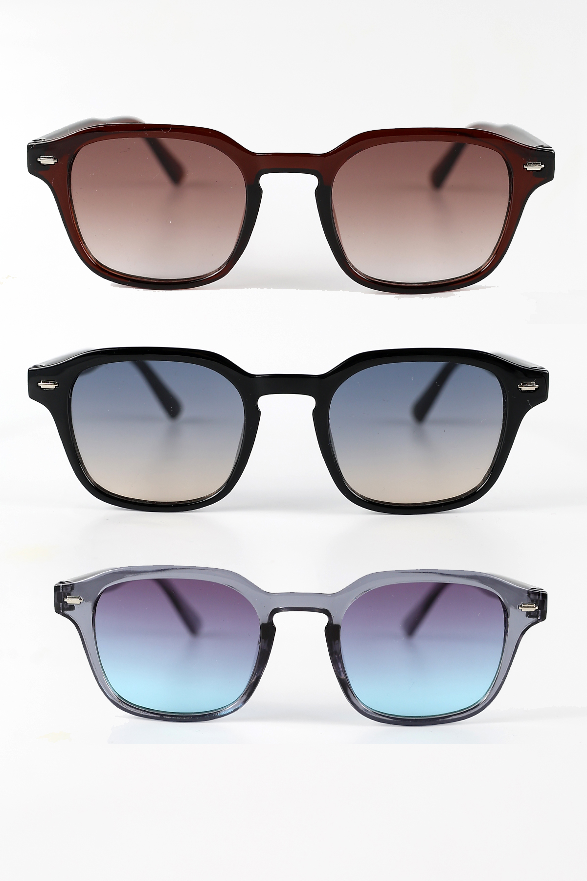 3lü Avantaj Seti Unisex Uv400 Koruma Kare Güneş Gözlüğü 23012