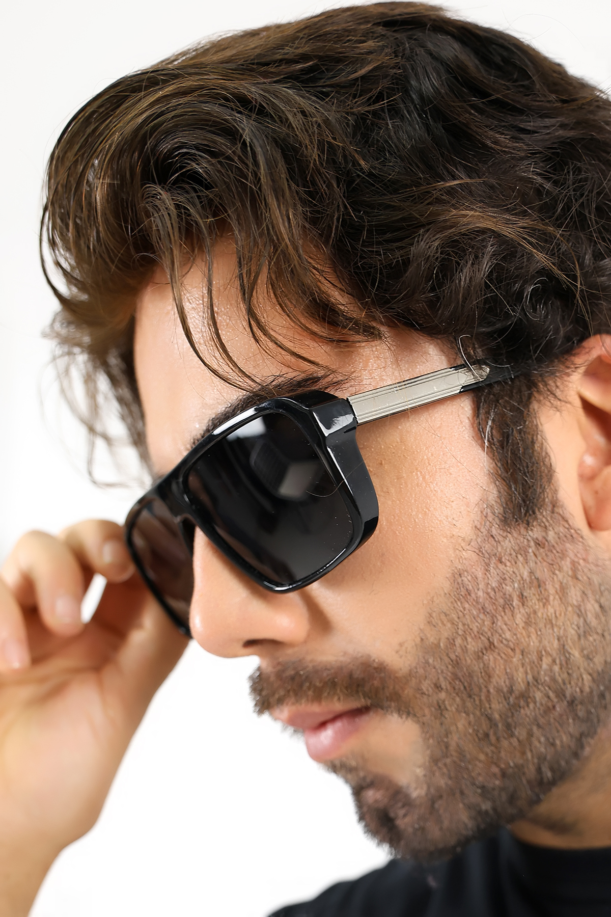 Erkek Siyah Kare UV400 Güneş Gözlüğü 25-13 C2
