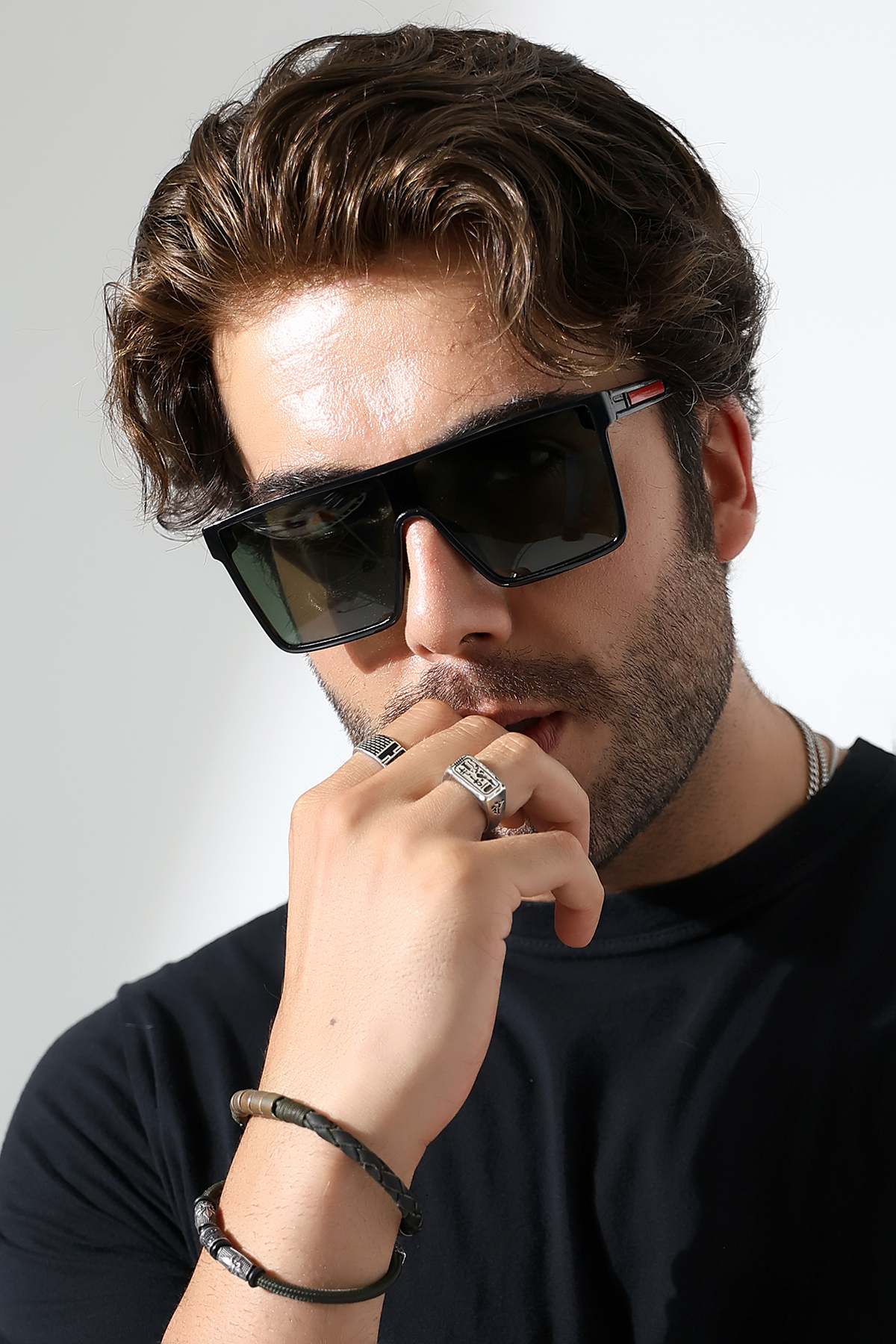 - Yetişkinlerin kullanımına uygun, şık ve fonksiyonel tasarımıyla dikkat çeken siyah polarize güneş gözlüğü.