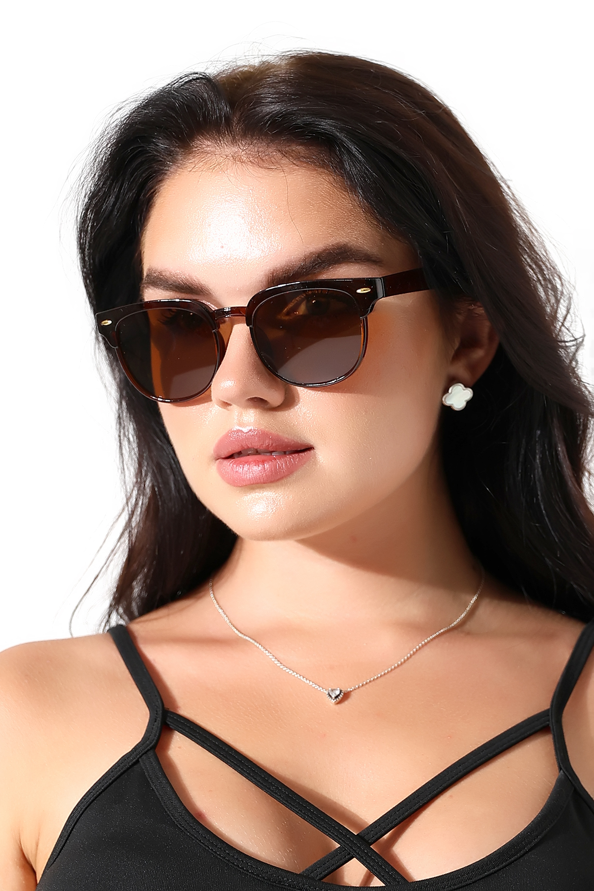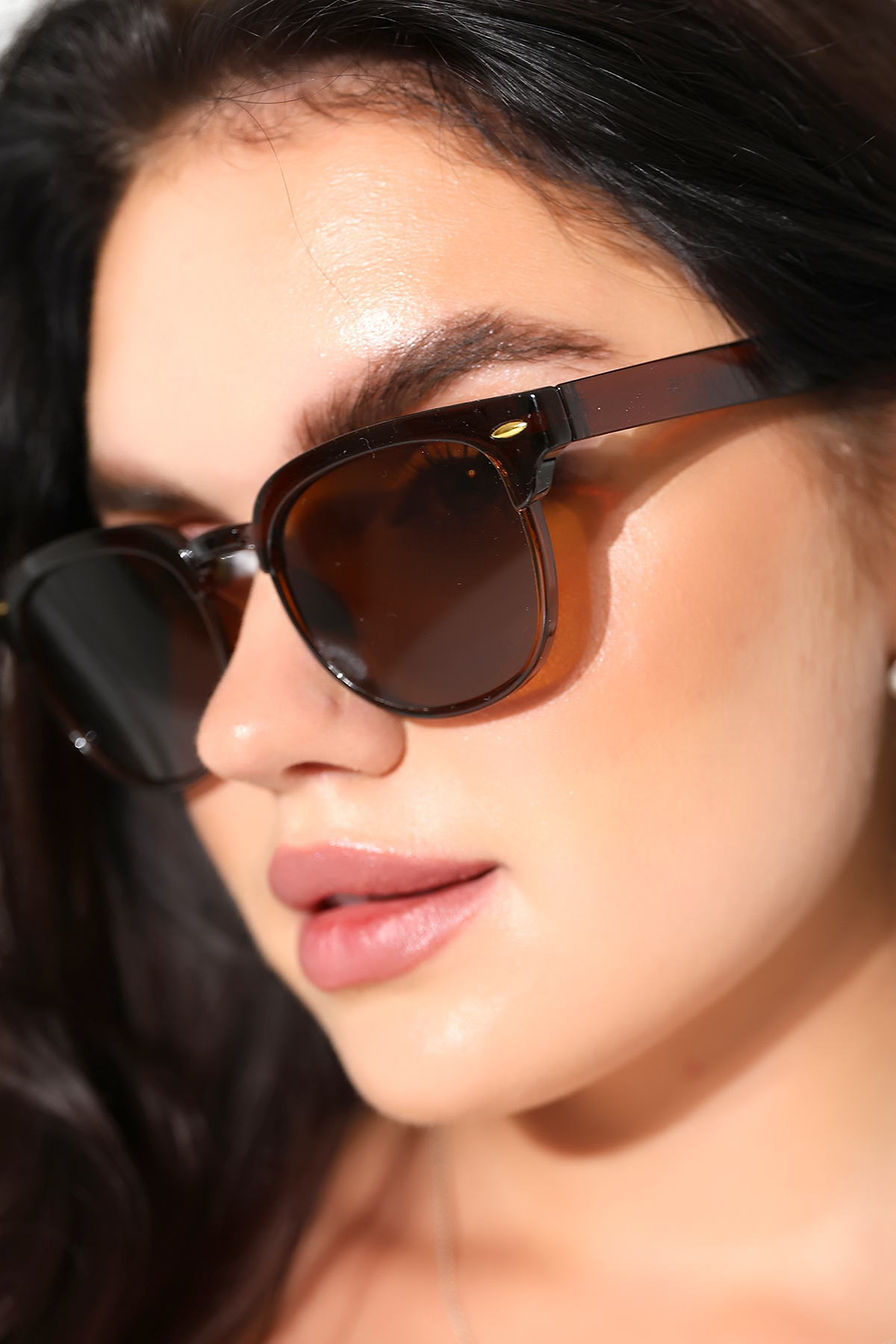 Kadın Aksesuarlı Kahverengi Club Master UV400 Güneş Gözlüğü 25-03 c3