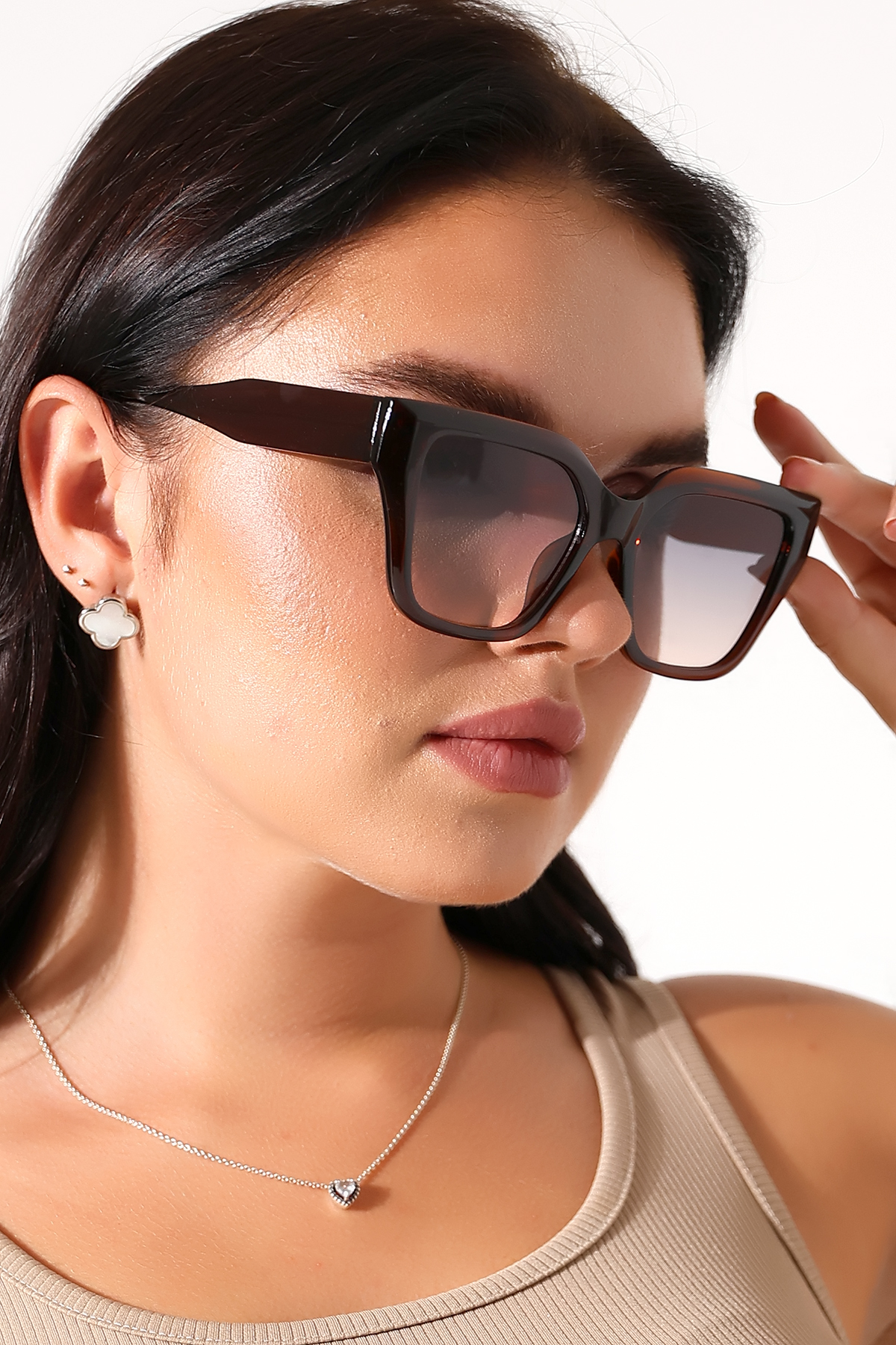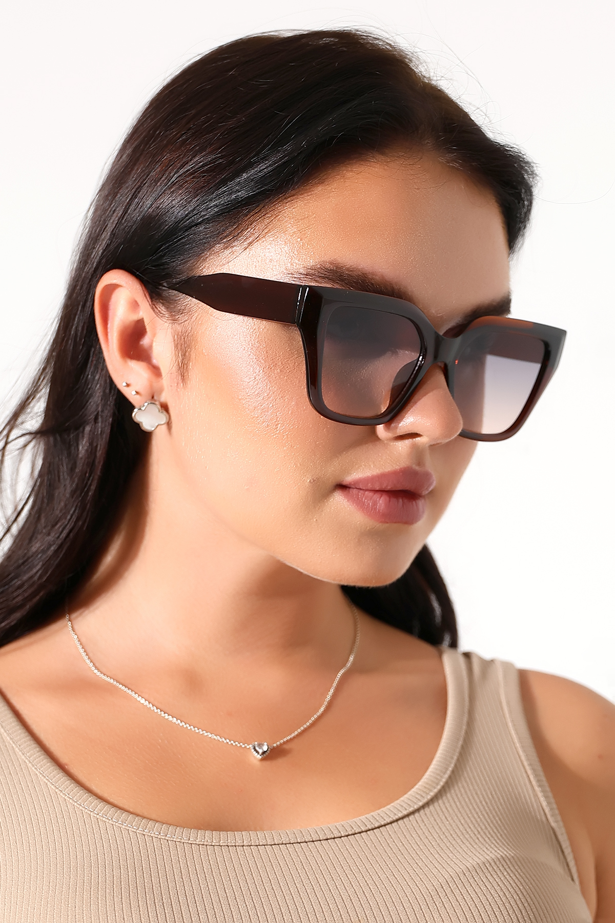 Kadın Cat Eyes Kahverengi UV400 Güneş Gözlüğü 23031 C3 Açık Renk