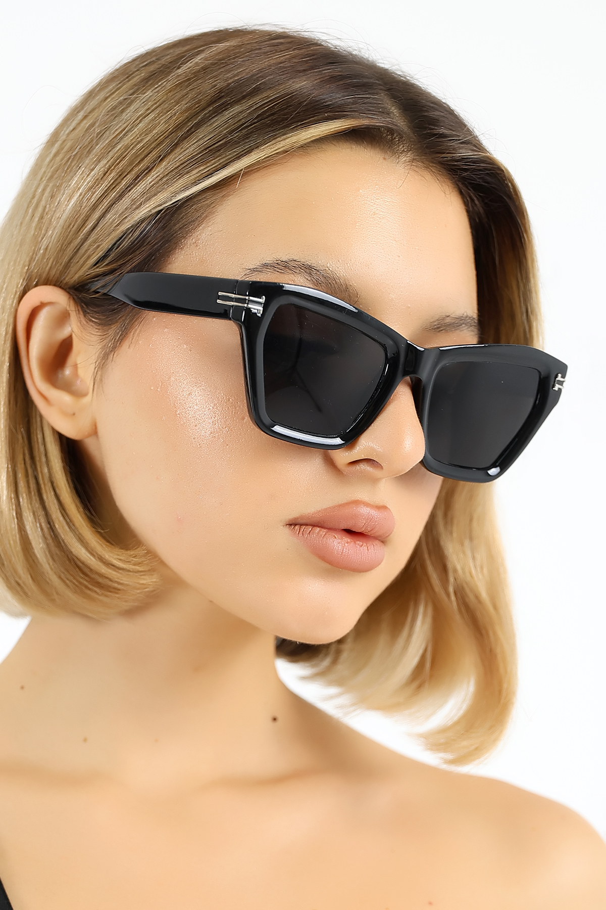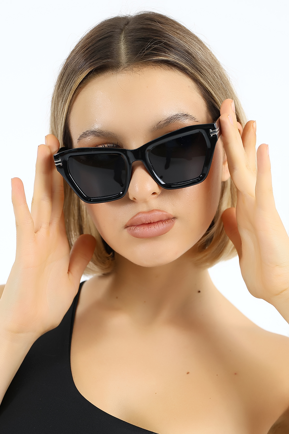 Kadın Siyah Cat Eyes UV400 Güneş Gözlüğü Gümüş Detay 25-18 C2