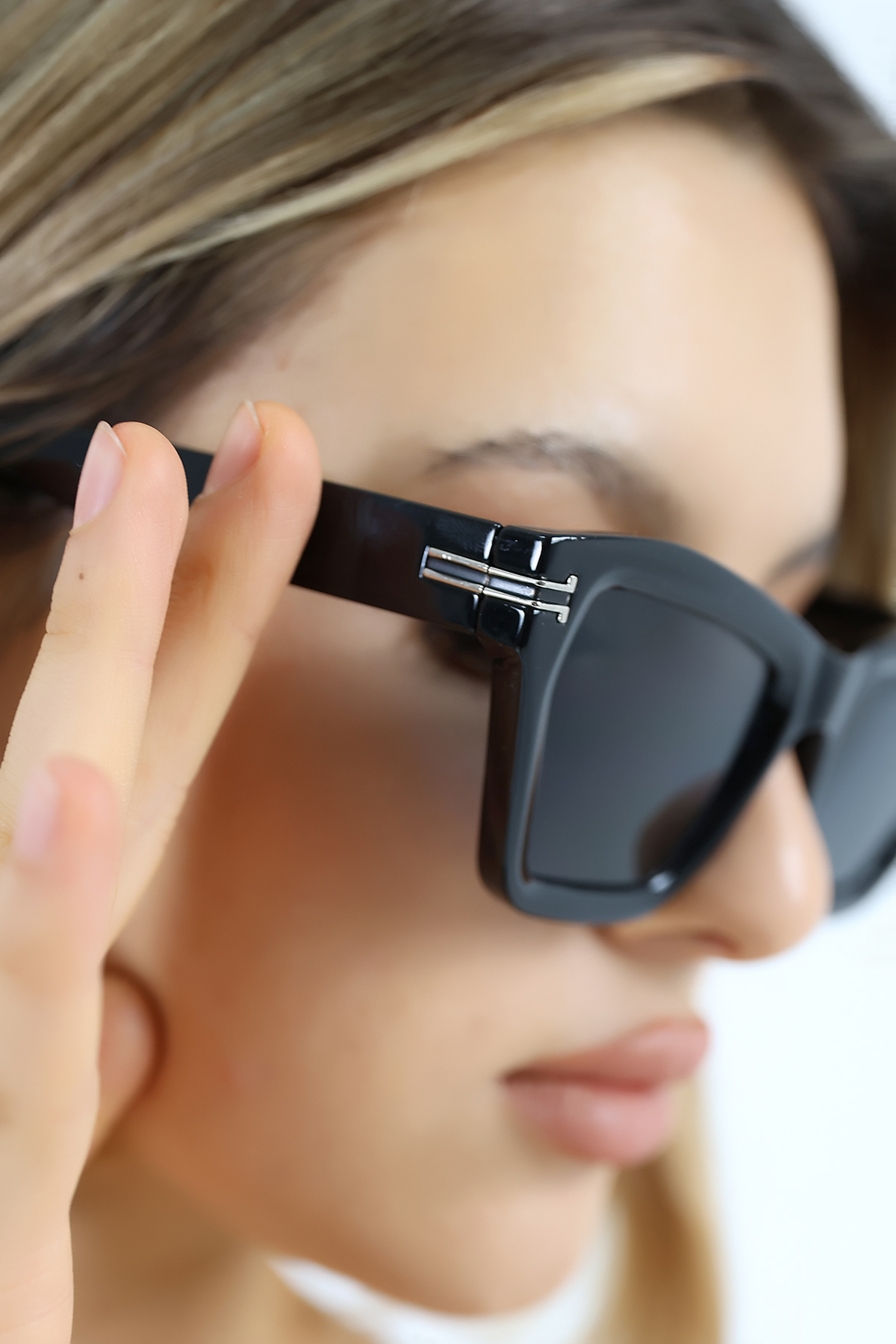 - Siyah camları, hem stil sahibi hem de fonksiyonel bir aksesuar olarak öne çıkar.