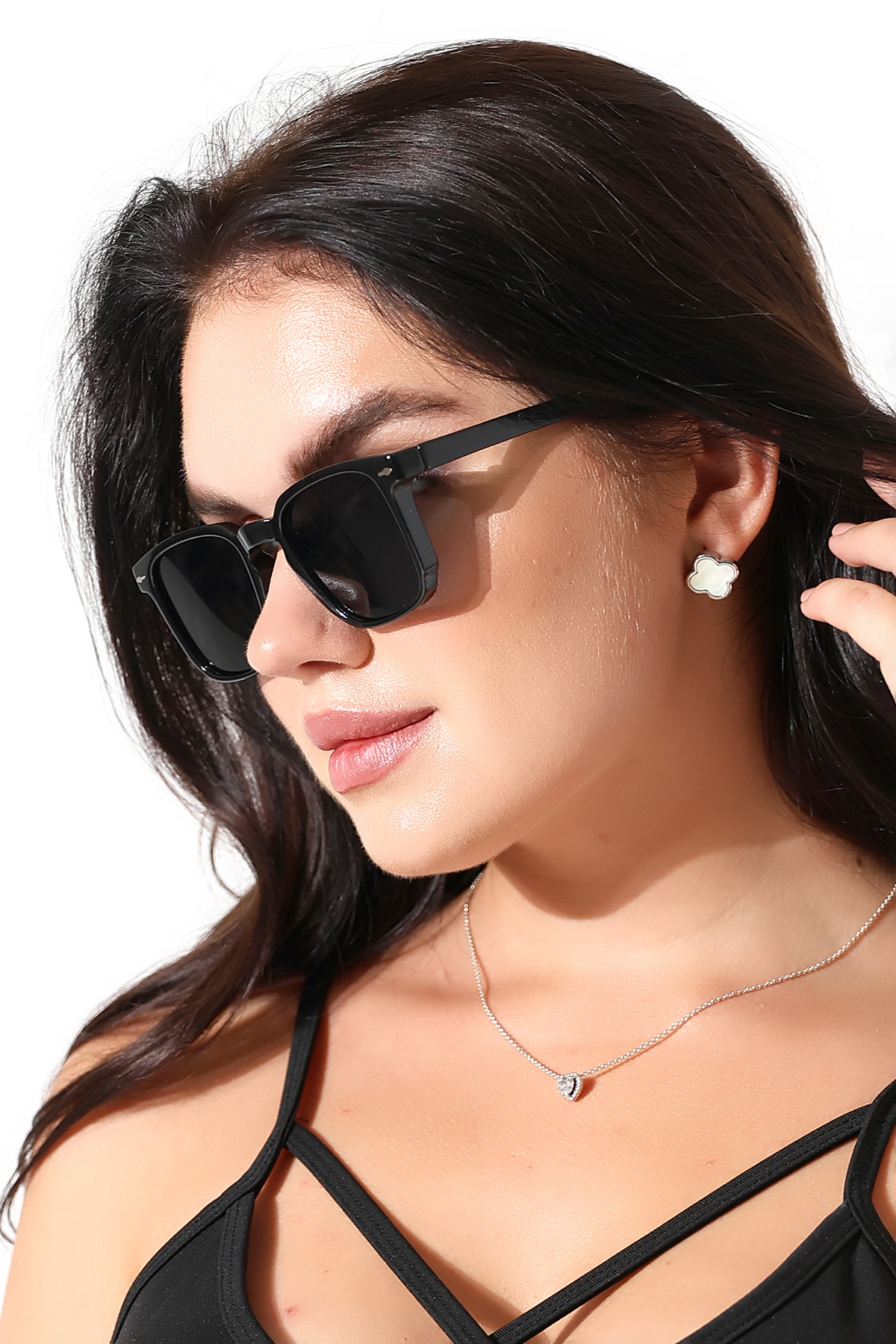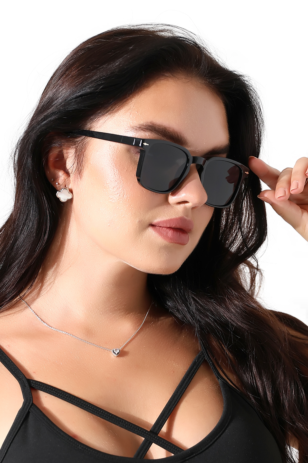 - Siyah camları, hem stil sahibi hem de fonksiyonel bir aksesuar olarak öne çıkar.