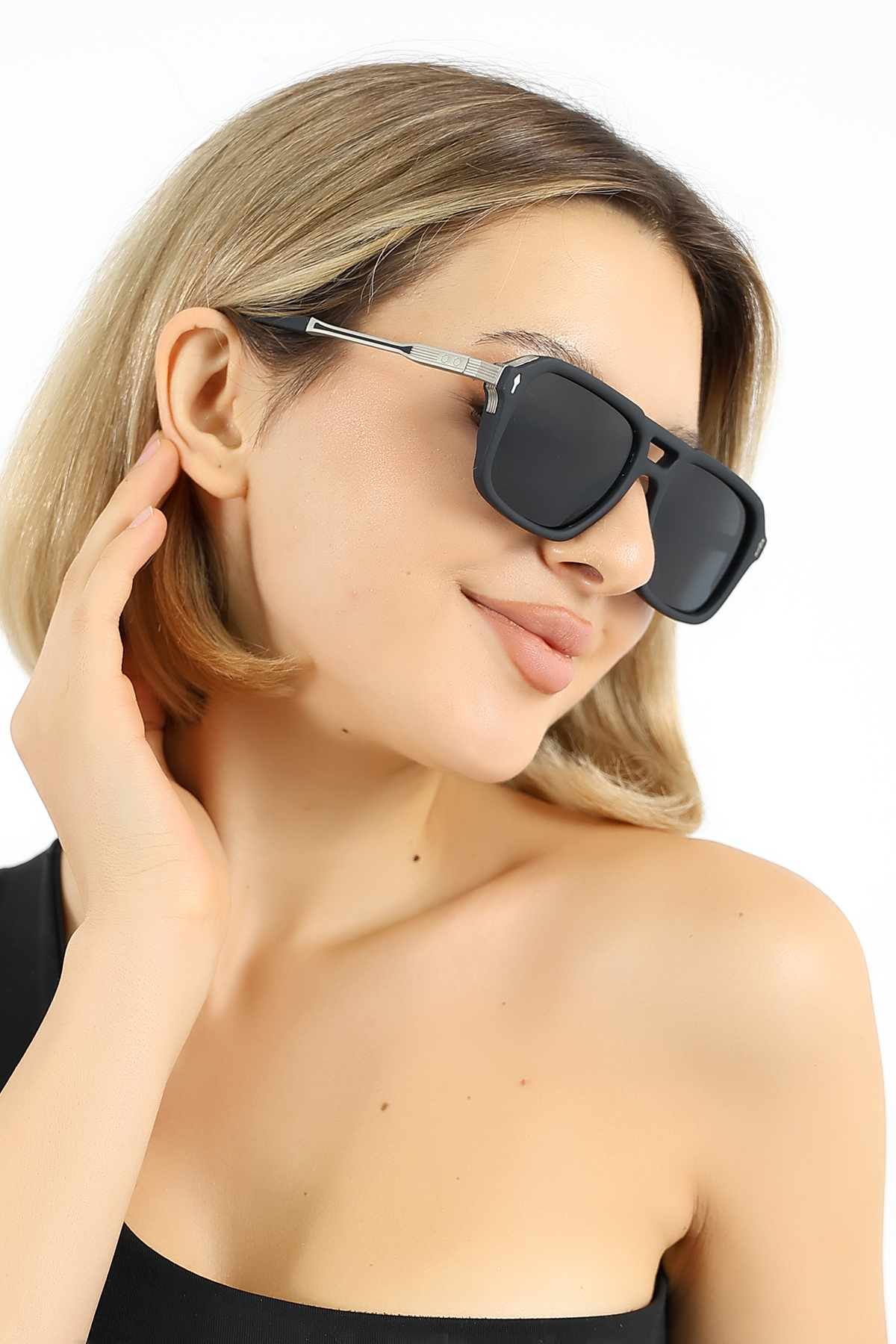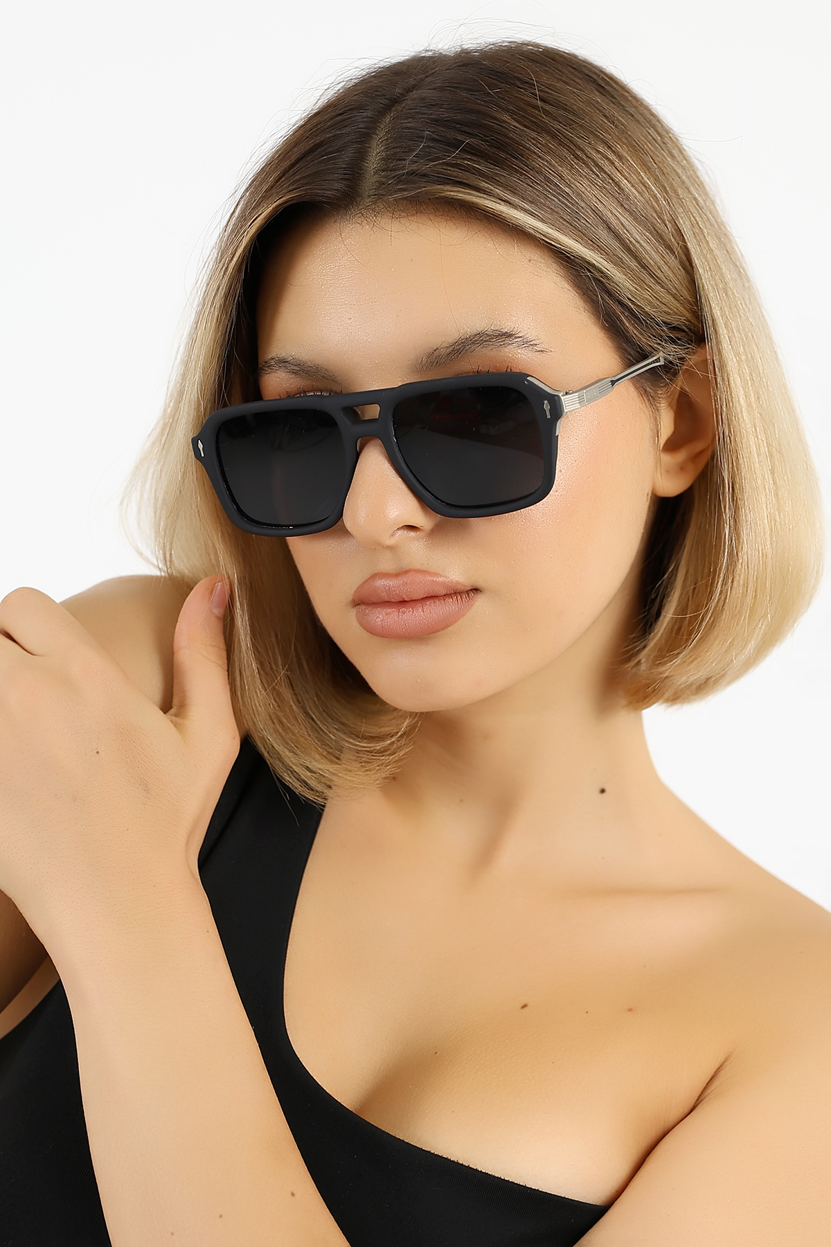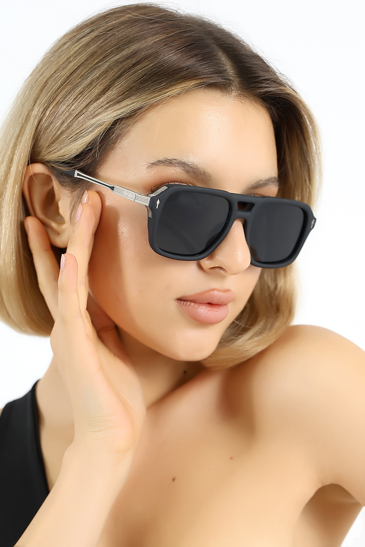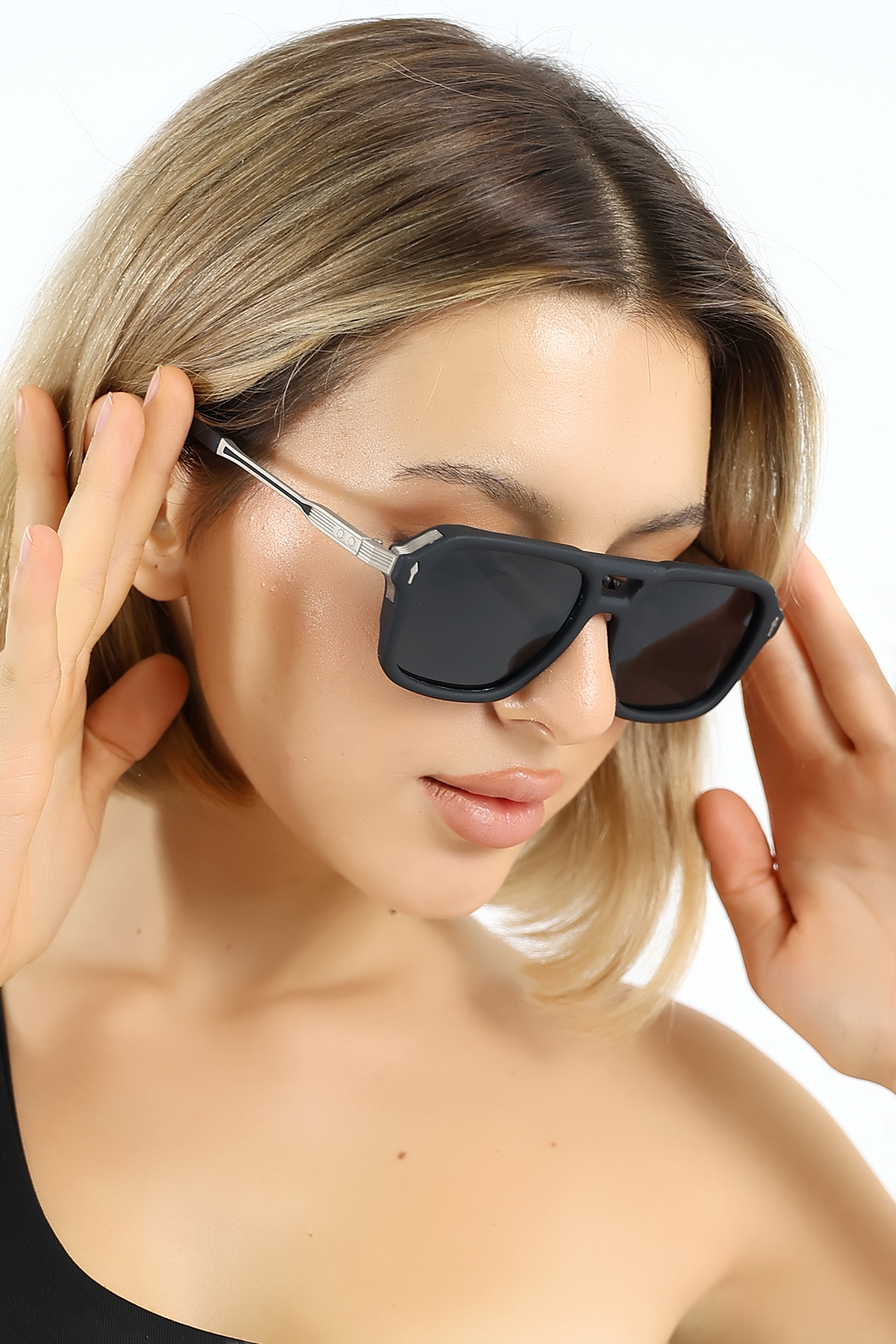 - Siyah camları, hem stil sahibi hem de fonksiyonel bir aksesuar olarak öne çıkar.