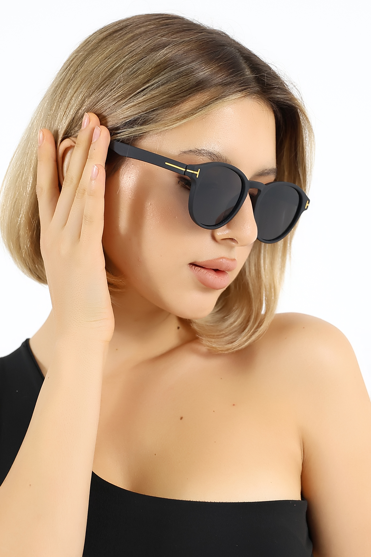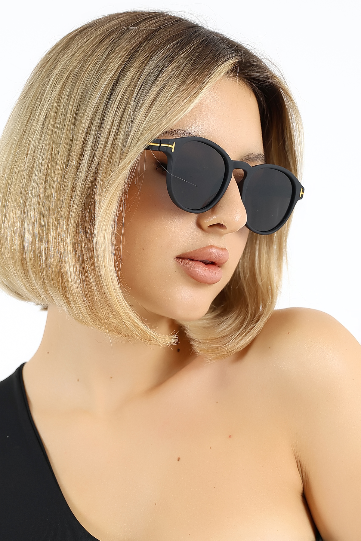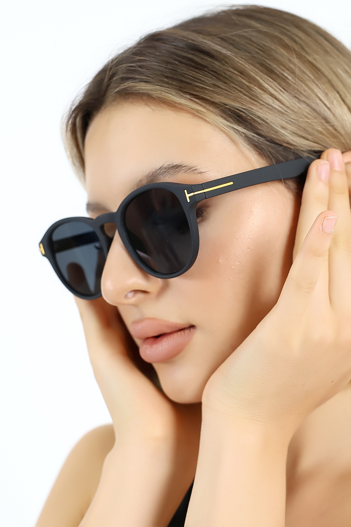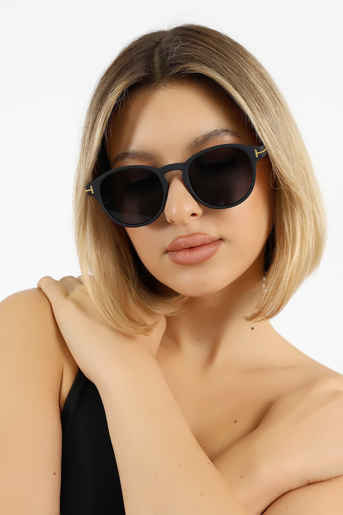 Kadın Mat Siyah Oval UV400 Güneş Gözlüğü Gold Detay WP25-14 C2 M
