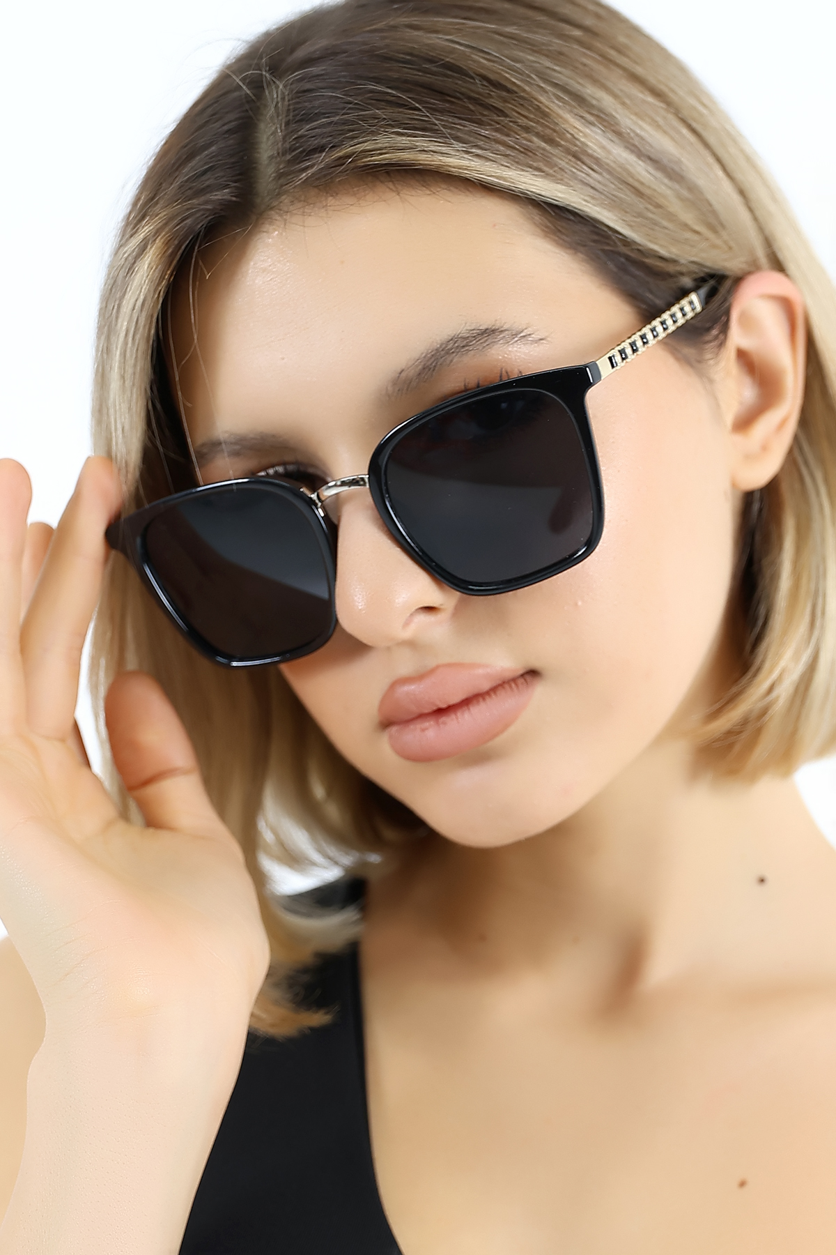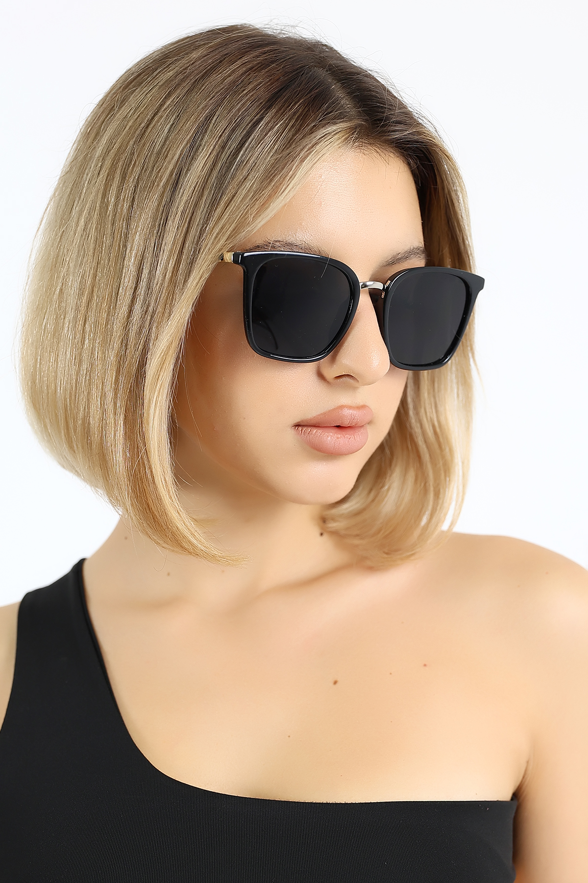 - Siyah camları, hem stil sahibi hem de fonksiyonel bir aksesuar olarak öne çıkar.