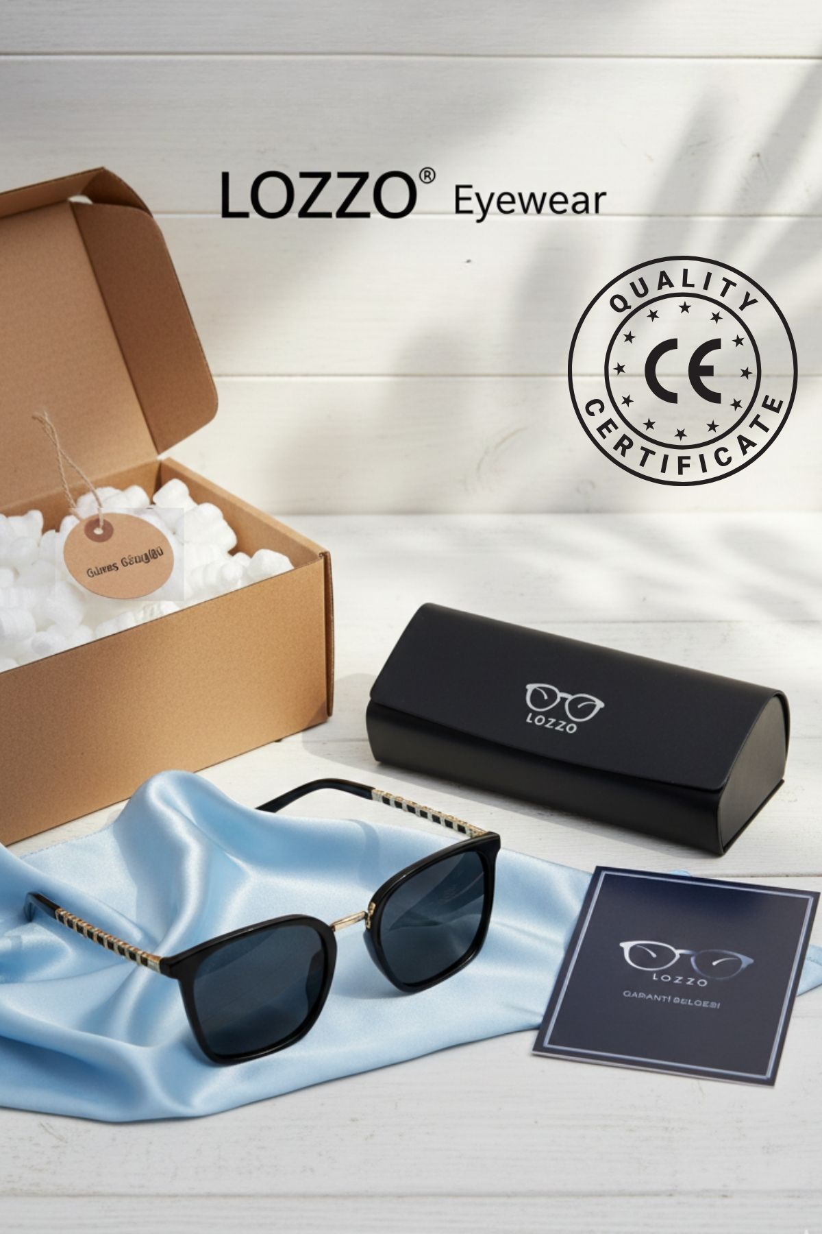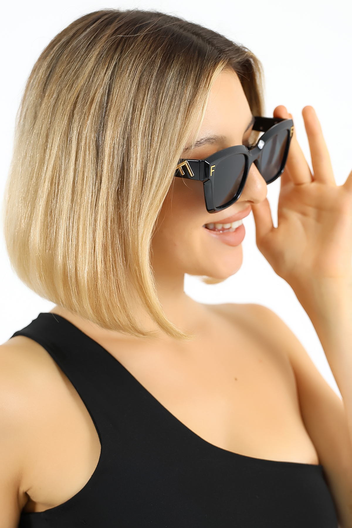 Kadın Siyah Oversize UV400 Güneş Gözlüğü Gold Detay WP25-08 C2