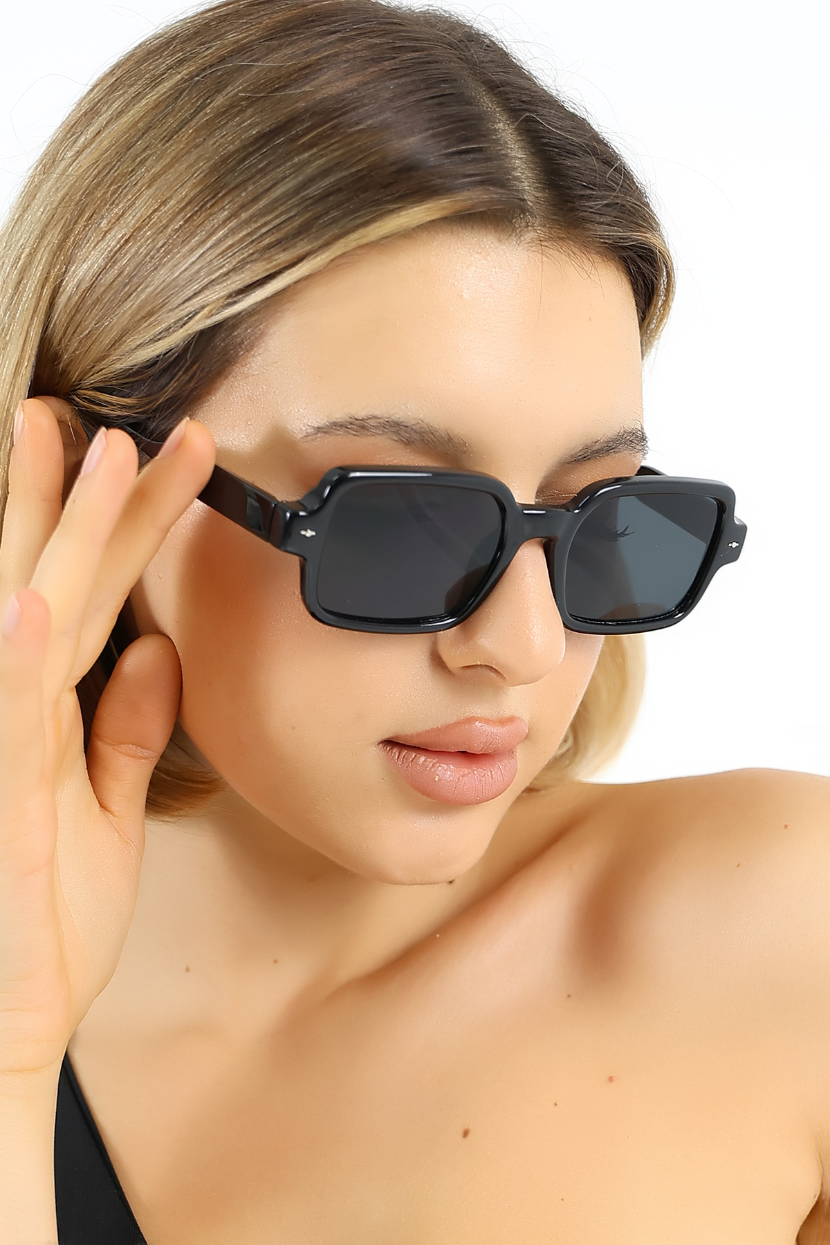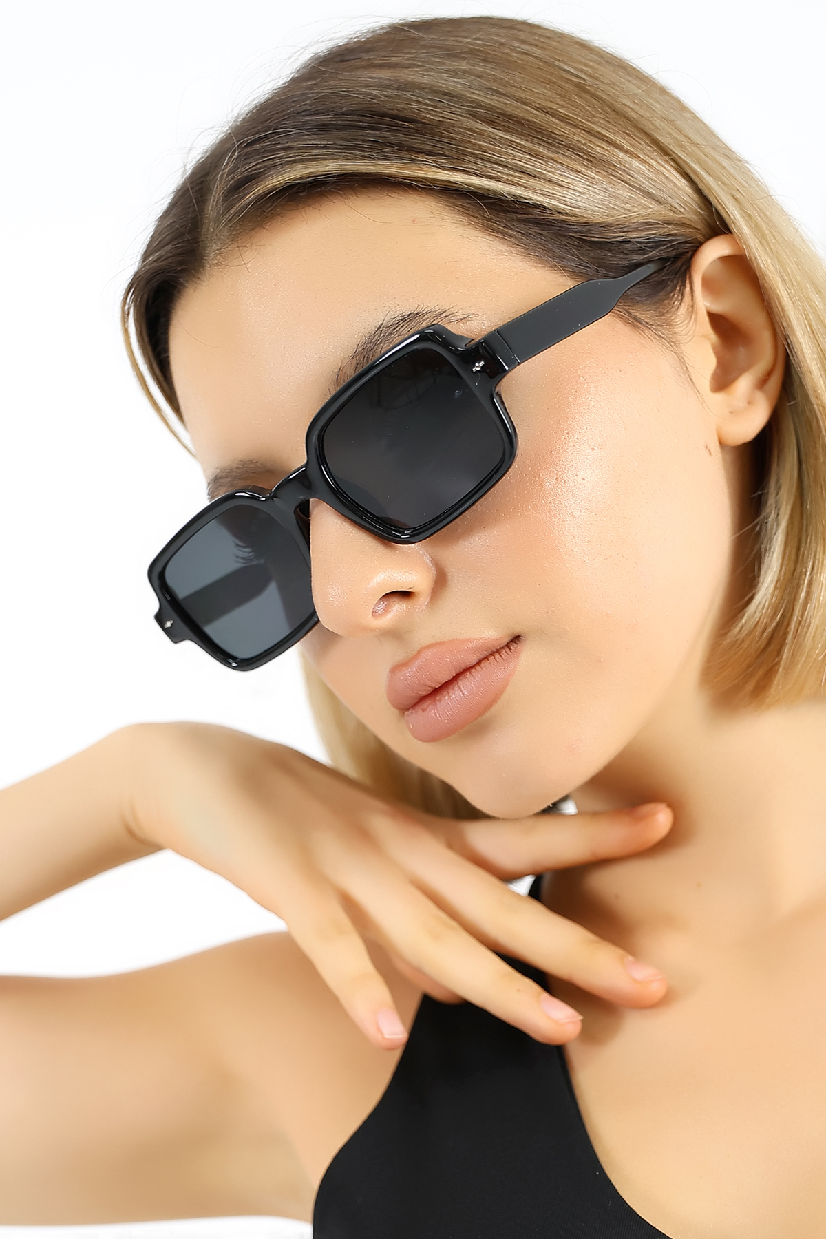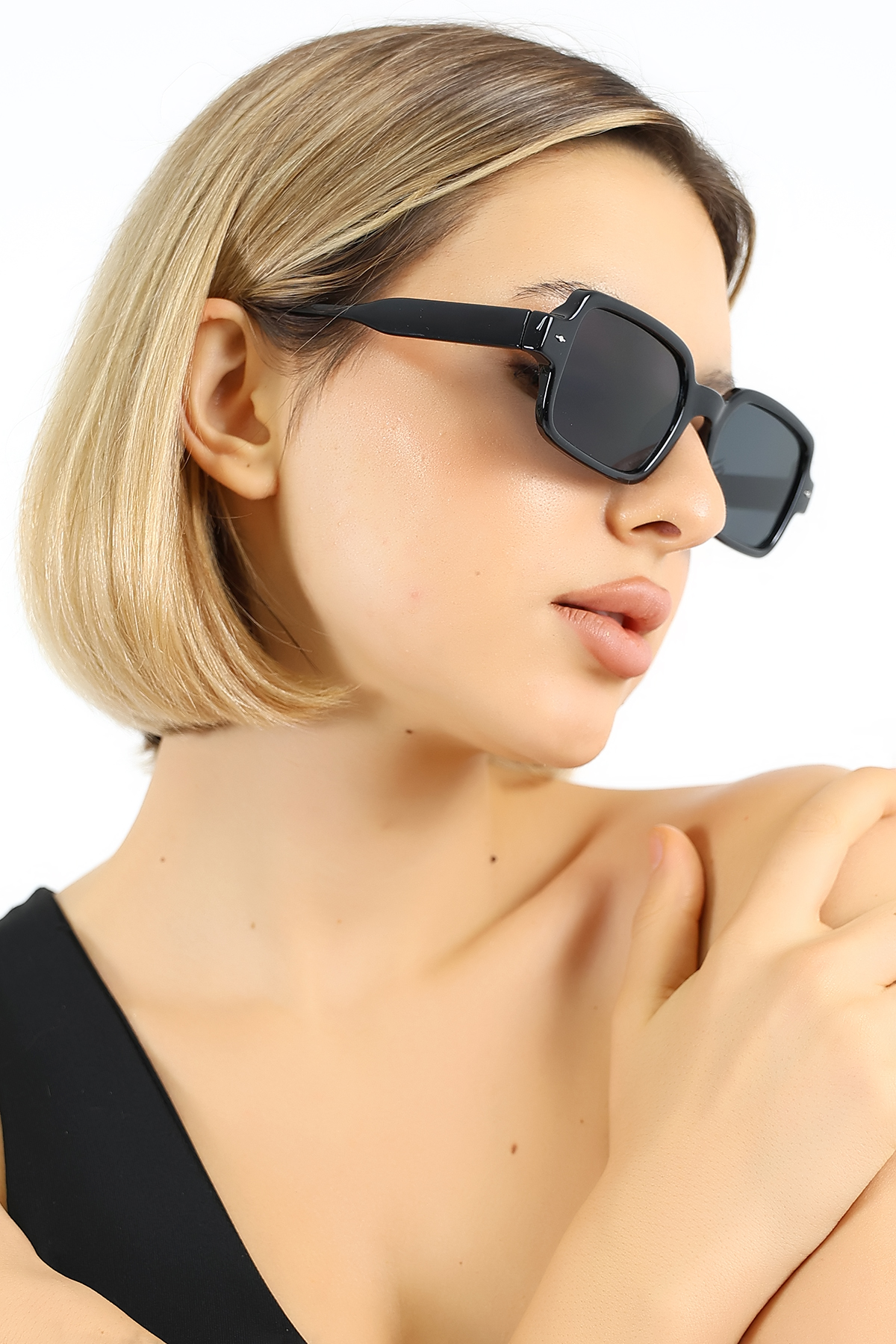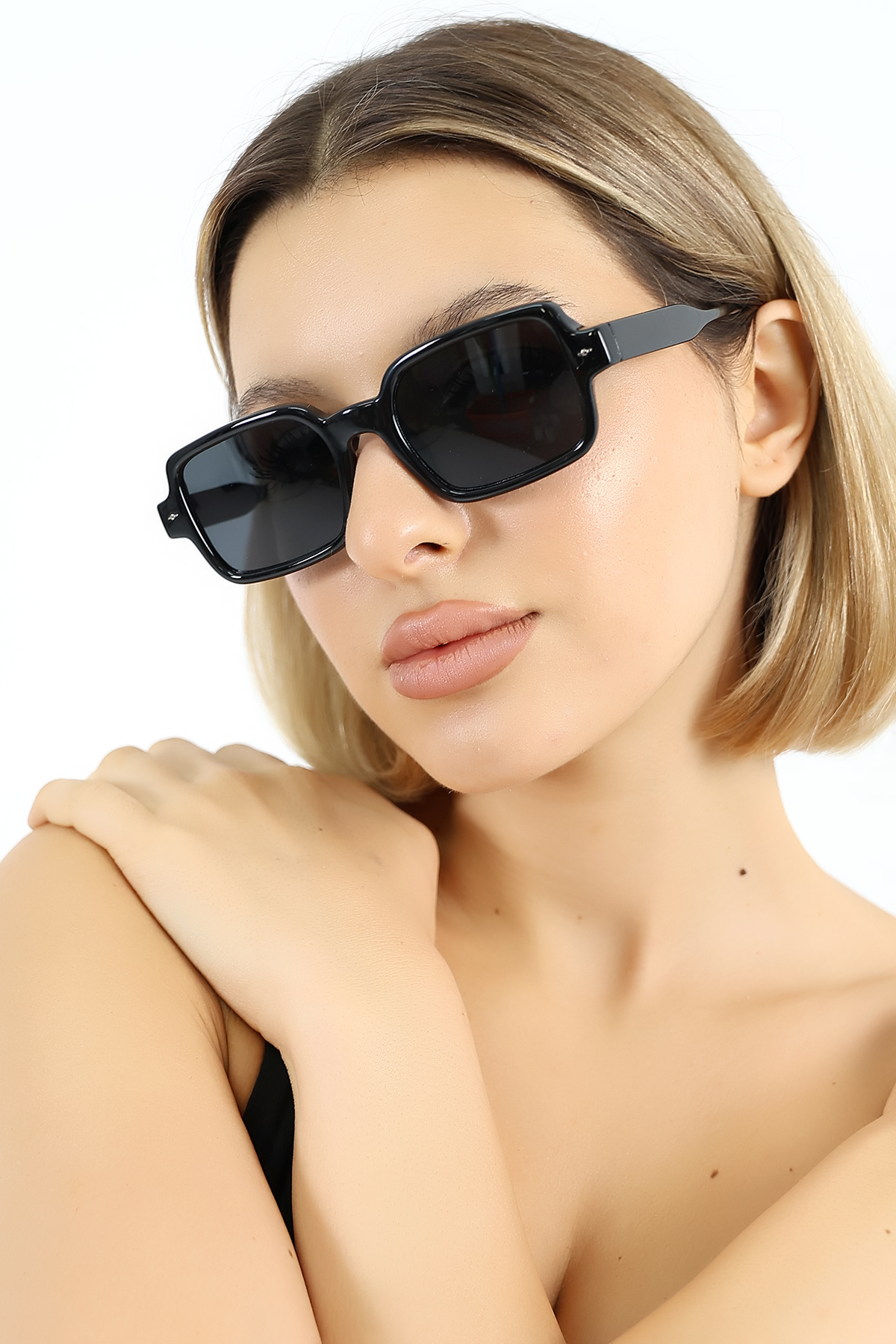 Kadın Siyah Kare UV400 Güneş Gözlüğü Aksesuarlı 25-21 C2