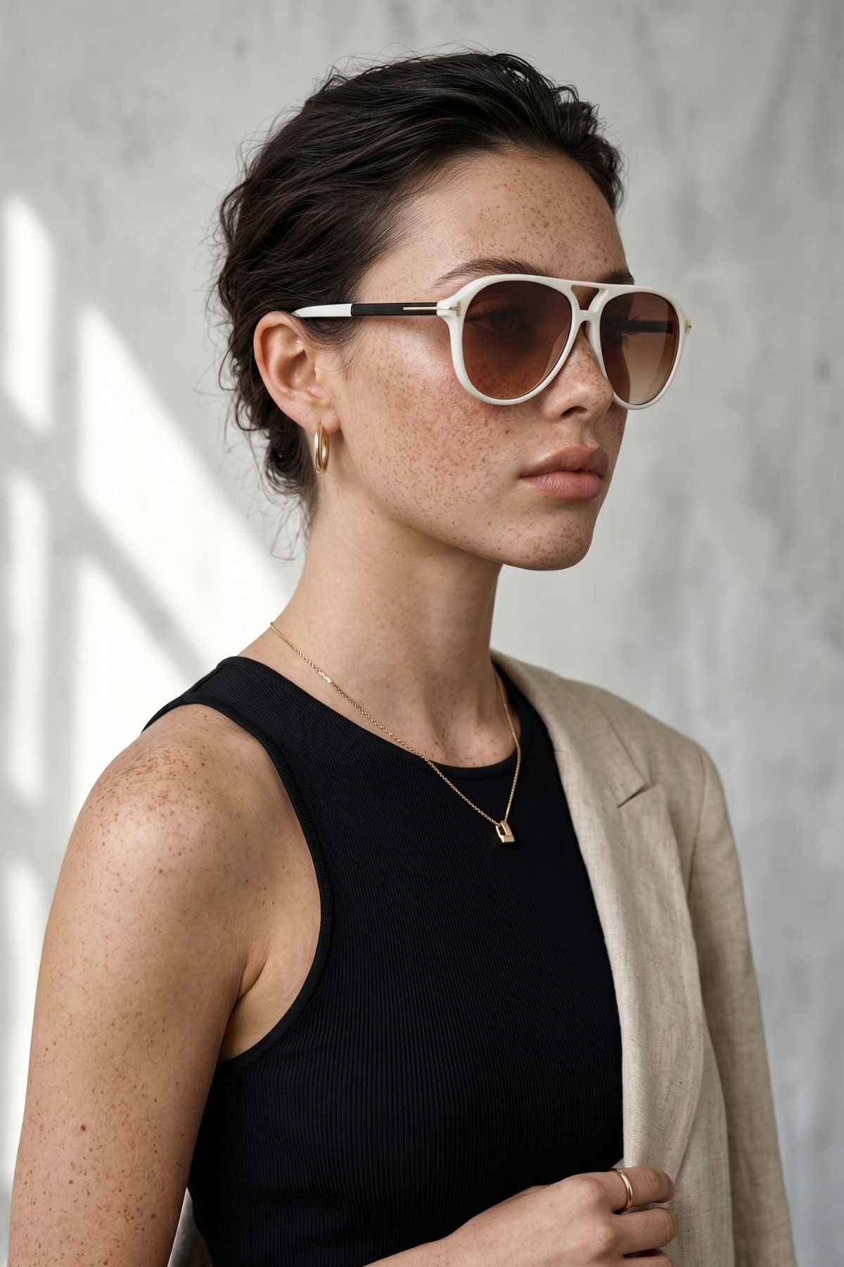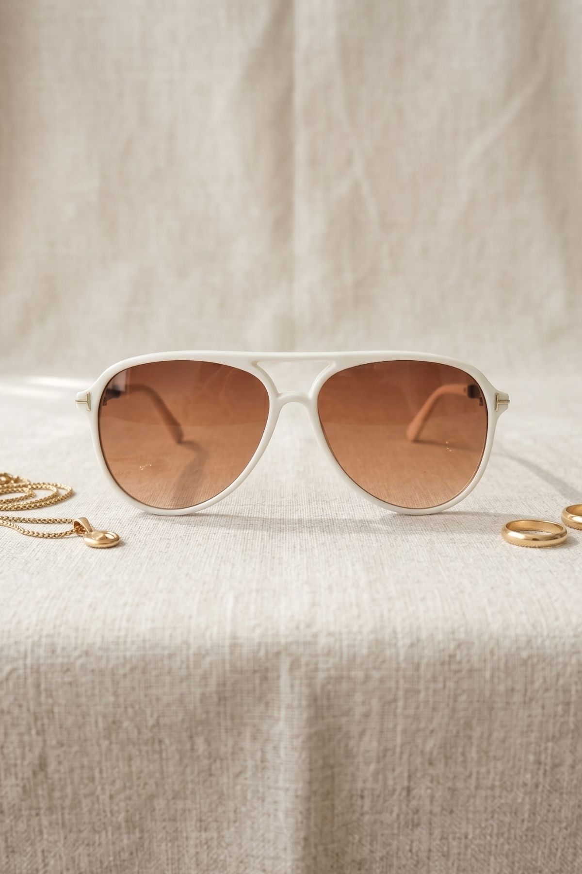Kadın UV400 Pilot Retro Beyaz Çerçeve Güneş Gözlüğü WP25-23 C20 Degrade