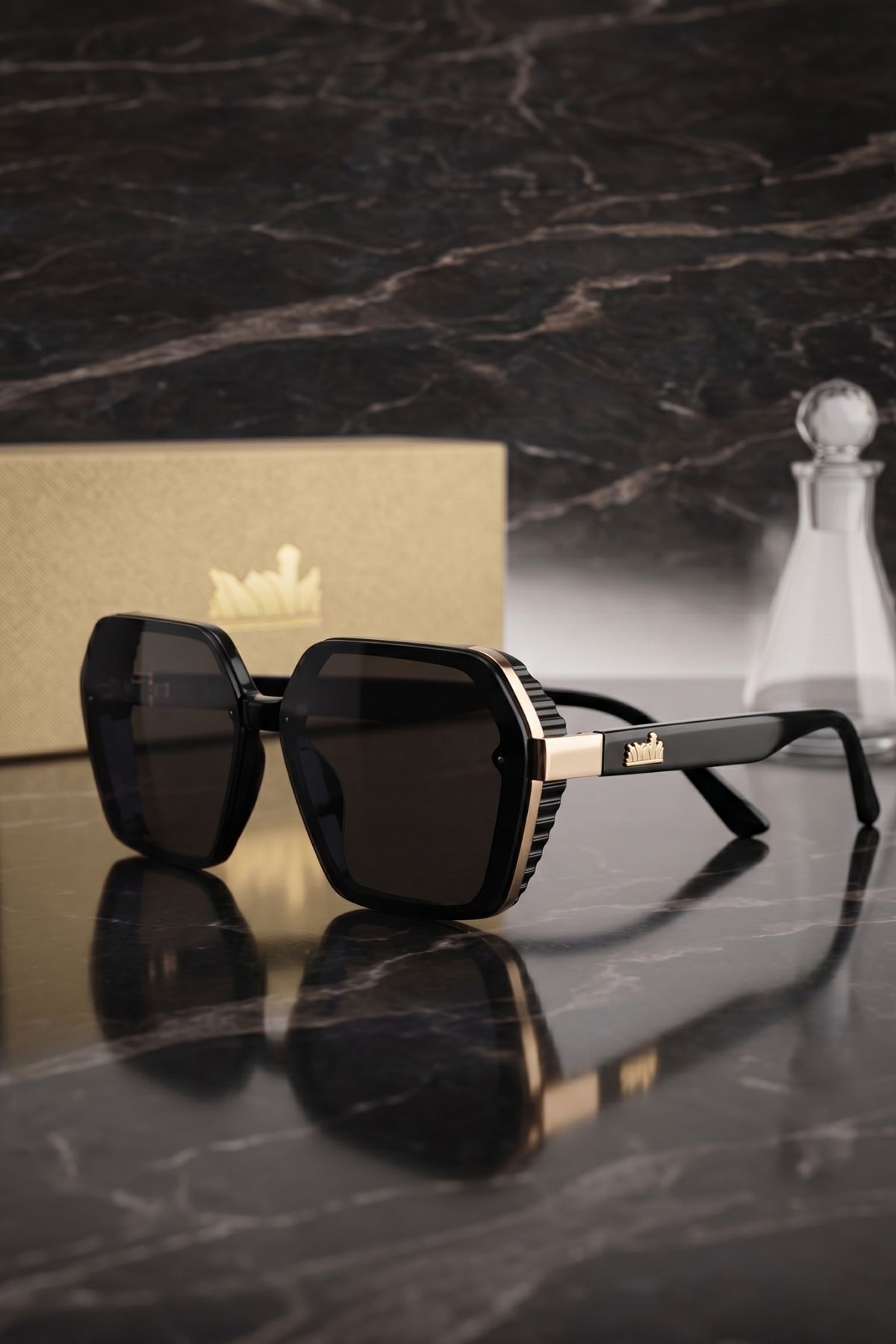 Kadın UV400 Siyah-Gold Çerçeve Güneş Gözlüğü Aksesuarlı WP25-22 C2